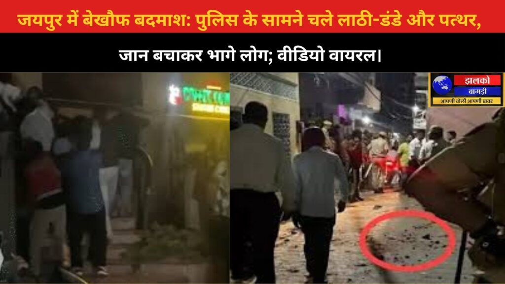 राजधानी जयपुर में मारपीट का एक वीडियो सोशल मीडिया पर तेजी से वायरल हो रहा है। वीडियो में देखा जा रहा है कि देर रात युवकों के दो गुटों के बीच लाठी-डंडे और पत्थर चल रहे हैं, जबकि मौके पर पुलिस मौजूद है। हालात इतने बिगड़ जाते हैं कि आसपास खड़े लोग जान बचाकर भागते नजर आते हैं।