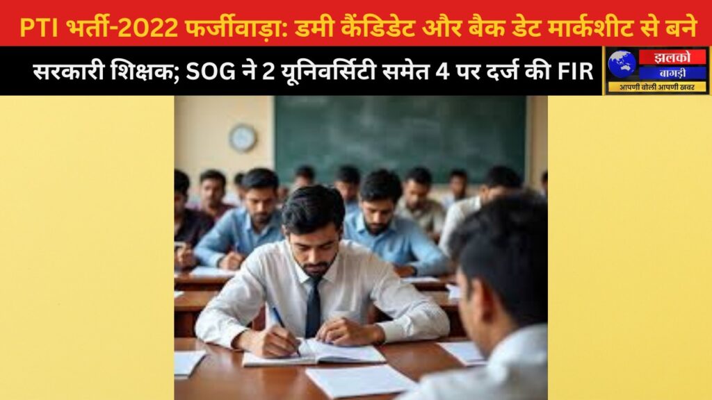 जयपुर (राजस्थान) — राज्य में सरकारी नौकरियों की शुचिता पर एक बार फिर सवाल खड़े हो गए हैं। PTI भर्ती-2022 में बड़े फर्जी वाड़े का खुलासा हुआ है, जिसमें डमी कैंडिडेट और बैक-डेट मार्कशीट के जरिए सरकारी शिक्षक बनने का मामला सामने आया है। इस पूरे प्रकरण में राजस्थान पुलिस की स्पेशल ऑपरेशन ग्रुप (SOG) ने दो आरोपियों और दो यूनिवर्सिटी के खिलाफ FIR दर्ज की है।