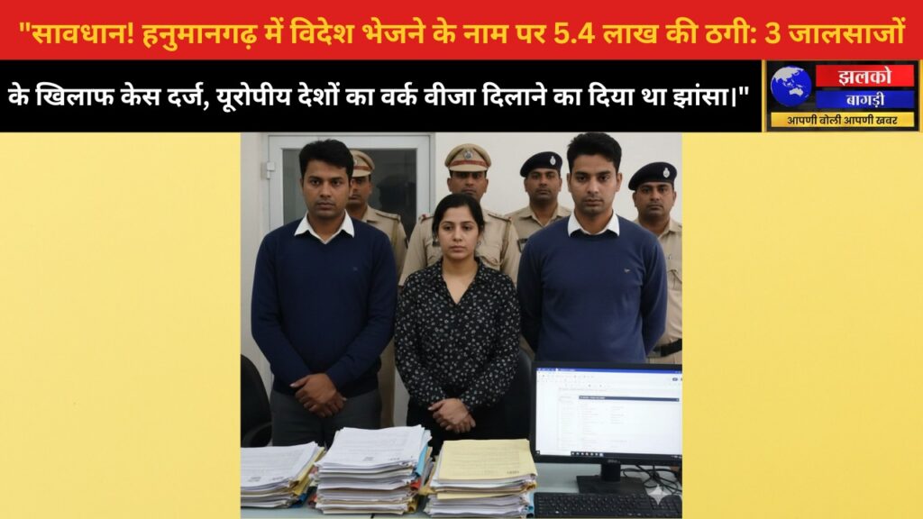 हनुमानगढ़, राजस्थान — वर्कवीजा ठगी के एक गंभीर मामले में रविवार को संगरिया थाना पुलिस ने तीन आरोपियों के खिलाफ केस दर्ज किया है। यह घटना हनुमानगढ़ शहर के संगरिया इलाके में सामने आई, जहाँ आरोपियों ने युवाओं को यूरोपीय देशों में काम और वर्क वीजा दिलाने का झांसा देकर लगभग ₹5.4 लाख ऐंठे।