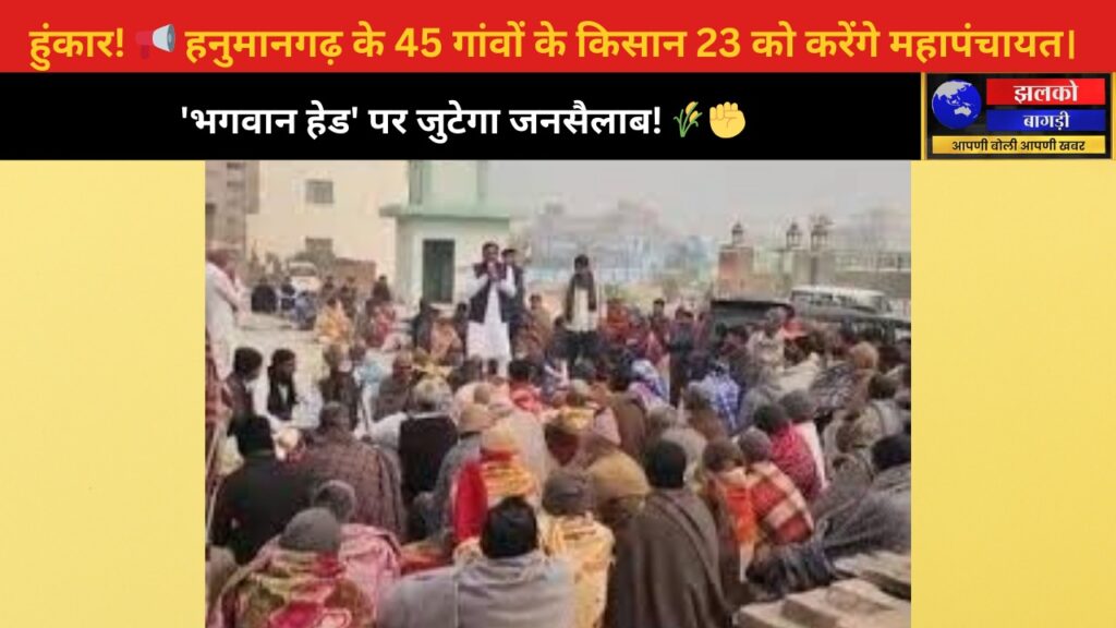 हनुमानगढ़ (राजस्थान): राजस्थान के हनुमानगढ़ जिले में पानी की कमी और जल संसाधनों को लेकर ग्रामीण और किसान संगठित हो रहे हैं। इलाके के लगभग 45 गांव के लोग मिलकर **23 जनवरी को बड़ी महापंचायत बुलाने की घोषणा कर दी है। यह महापंचायत ग्रामीणों के अनुसार उनके पानी संकट और पानी के वितरण में न्याय की मांग के लिए है।