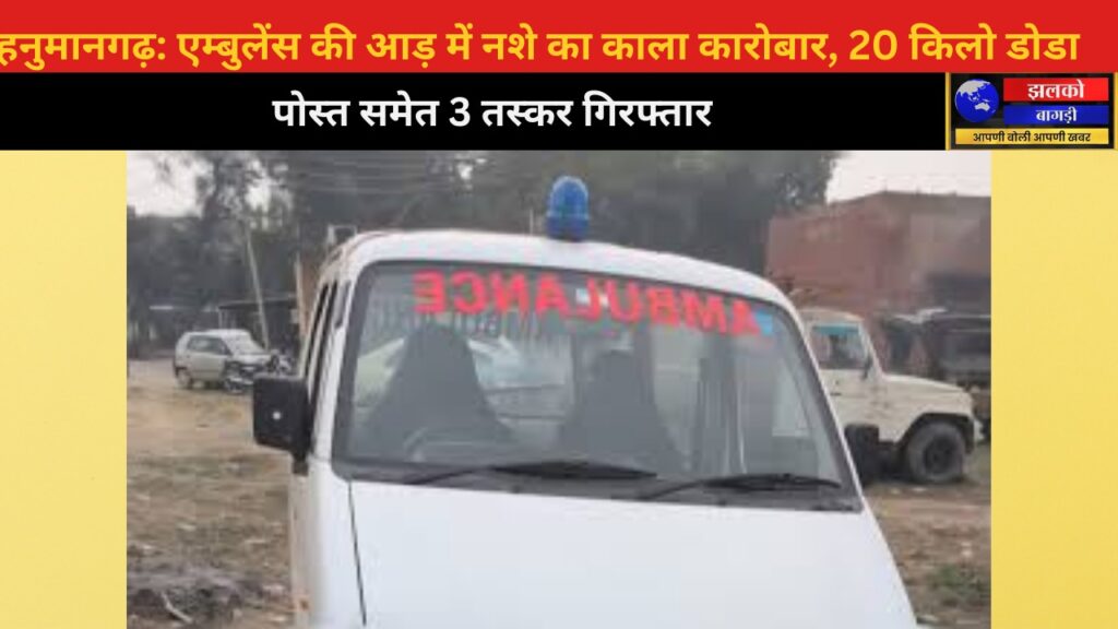 एम्बुलेंस से 20 किलो डोडा पोस्त जब्त, हनुमानगढ़ में तीन आरोपी गिरफ्तार