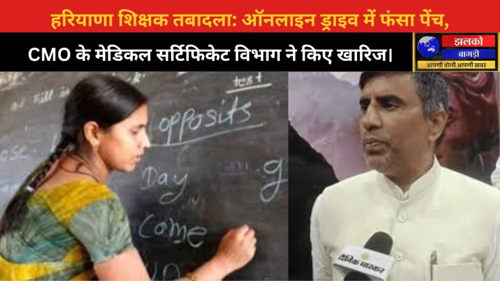 हरियाणा के ऑनलाइन टीचर्स ट्रांसफर ड्राइव के दौरान ट्रांसफर से संबंधित “क्रॉनिक डिजीज” प्रमाण पत्र को लेकर बड़ा विवाद खड़ा हो गया है। इसके चलते विभाग ने अंतिम तिथि बढ़ा दी है, जिससे शिक्षकों और कर्मचारियों में राहत और असमंजस दोनों की स्थिति बनी है। Babushahi.com+1