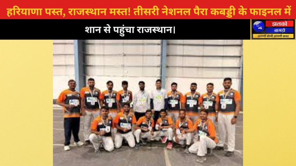 राजस्थान की पैरा कबड्डी टीम ने शानदार प्रदर्शन करते हुए तीसरी नेशनल पैरा कबड्डी चैंपियनशिप में हरियाणा को मात देकर फाइनल में जगह बना ली है। इस जीत के साथ ही राजस्थान की टीम ने टूर्नामेंट में अपनी मजबूत दावेदारी साबित कर दी है और खिताब से एक कदम दूर पहुंच गई है।