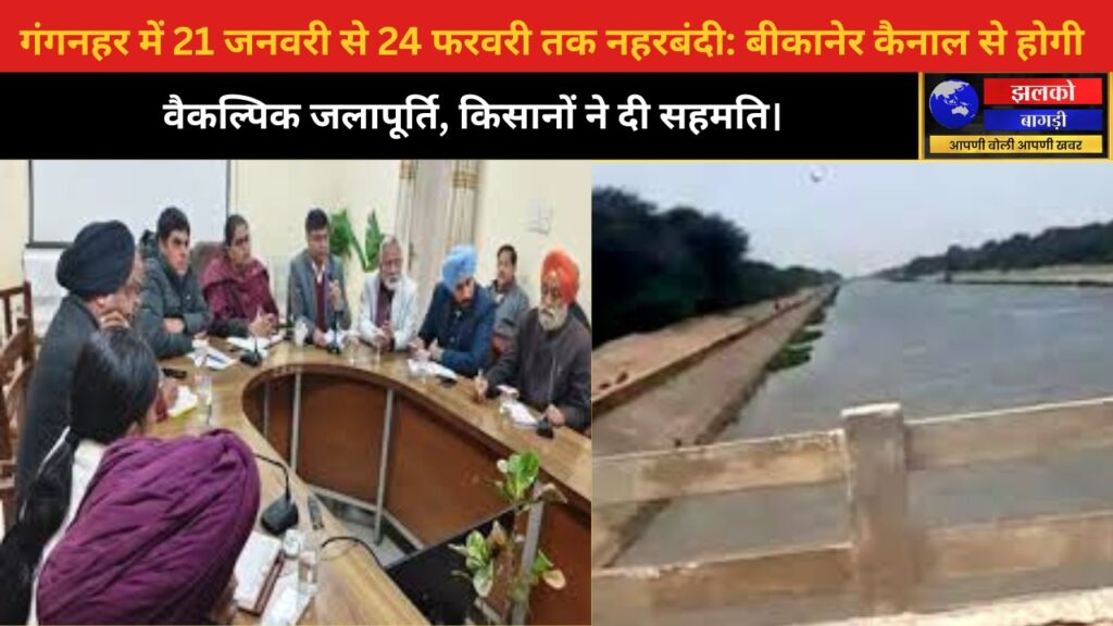 राजस्थान के उत्तर-पश्चिमी क्षेत्र में जल प्रबंधन को लेकर बड़ा निर्णय लिया गया है। गंगनहर में 21 जनवरी से 24 फरवरी तक नहरबंदी लागू की जाएगी। इस दौरान सिंचाई और पेयजल आपूर्ति को प्रभावित होने से बचाने के लिए प्रशासन ने बीकानेर कैनाल से वैकल्पिक पानी उपलब्ध कराने की व्यवस्था तय की है। इस निर्णय पर किसानों और जल उपभोक्ताओं की सहमति भी जताई गई है।