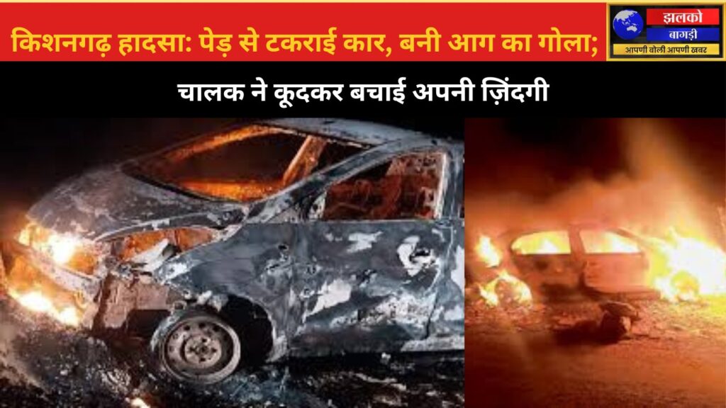 किशनगढ़ में तेज रफ्तार कार पेड़ से भिड़ी, आग का गोला बनी