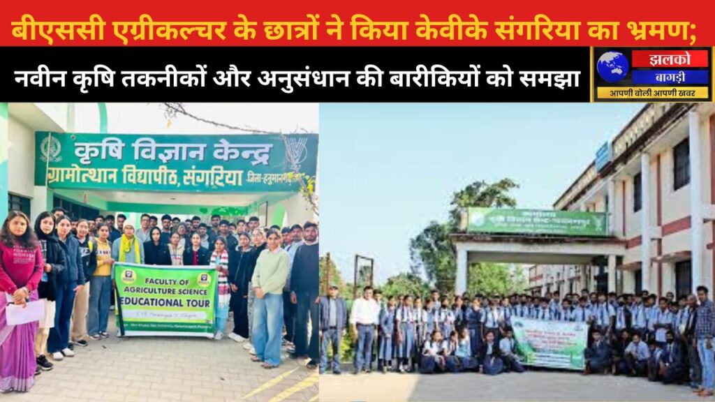 हनुमानगढ़, राजस्थान — बीएससी एग्रीकल्चर के छात्रों ने केवीके संगरिया का एक शैक्षिक भ्रमण किया, जिसमें वे नवीन कृषि तकनीकों और अनुसंधान गतिविधियों से परिचित हुए। यह कार्यक्रम केवीके, संगरिया (Krishi Vigyan Kendra, Sangaria) में आयोजित किया गया था, जो भारतीय कृषि अनुसंधान परिषद (ICAR) के तहत काम करता है और कृषि ज्ञान तथा तकनीक का प्रसार करता है। केवीके का उद्देश्य किसानों तथा कृषि विद्यार्थियों को आधुनिक और सुदृढ़ कृषि पद्धतियों की जानकारी देना है।